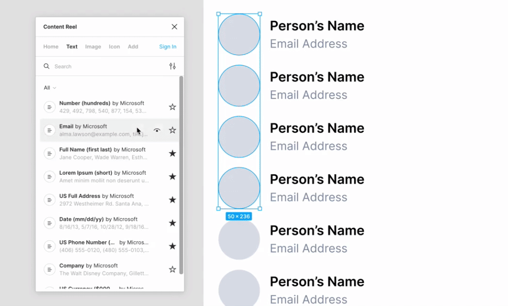 - Content Reel для додавання в дизайн тексту, іконок чи зображень.