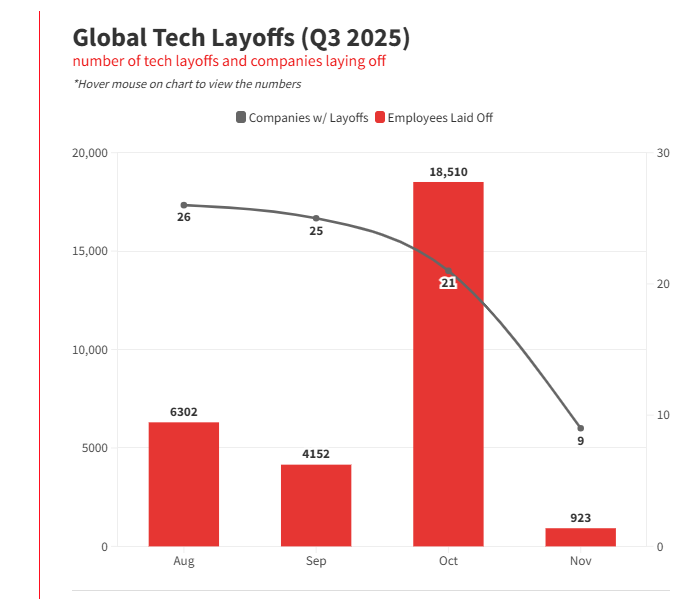 У третьому кварталі 2025 року дані Layoffs.fyi зафіксували 26 781 звільнення — менше, ніж 36 728 у другому кварталі. На поверхні — полегшення. Але глибший аналіз показує чіткий тренд: компанії не просто зменшують штат, вони перекроюють структуру ролей, замінюючи частину функцій агентами штучного інтелекту. Генеральний директор Salesforce Марк Беніофф сказав це максимально прямо: