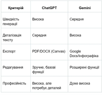 Як бачите ChatGPT і Gemini створені з різним фокусом. Один — про креатив і текстову гнучкість. Інший — про точність, аналітику і автоматизацію.