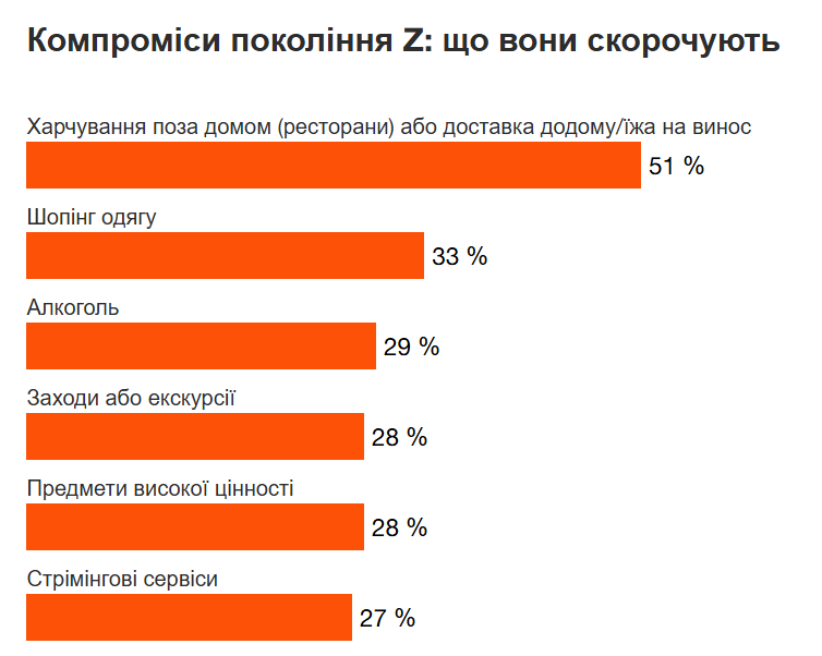 52% представників Gen Z уже скорочують витрати, щоби вписатися в рамки своїх можливостей. Економлять на всьому: від кави з собою до підписок і дозвілля.