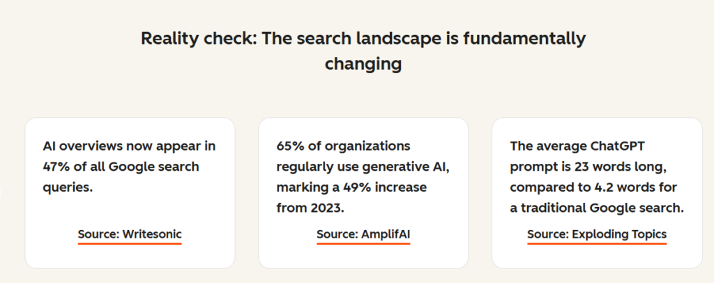 Це добре видно з досліджень. За даними Semrush, AI-огляди у пошуку значно частіше формуються на основі контенту, який містить конкретні факти, статистику або дослідження, ніж на основі загальних пояснювальних текстів. Контент без цифр AI сприймає як думку, а не як знання.