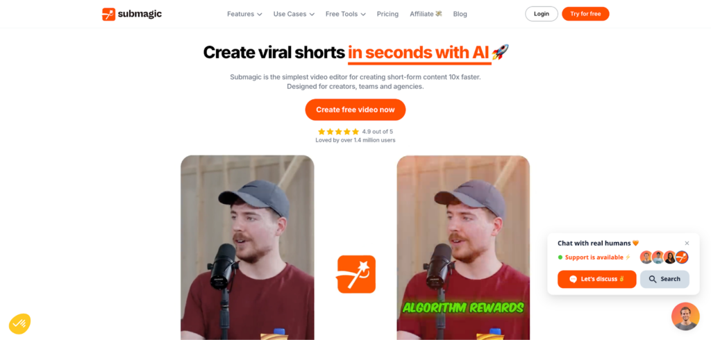 Submagic створювався з конкретним завданням: допомогти швидко нарізати контент і зробити його візуально привабливим. І з цим він справляється краще за всіх конкурентів із цього списку 🔝
