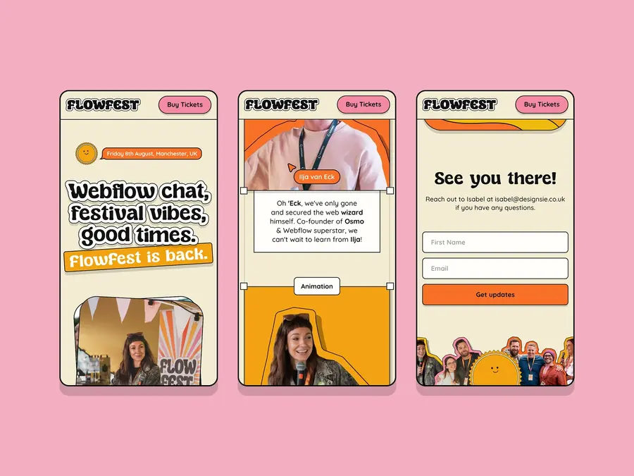 Це можуть бути геометричні форми з 80-х, пухкі й навмисно великі шрифти з 90-х, lo-fi палітри й відчуття «старого вебу». Але все це не виглядає застарілим, тому що поверх накладаються сучасні сітки, інтерактив і актуальна типографіка. Ключова ідея тут — контраст.