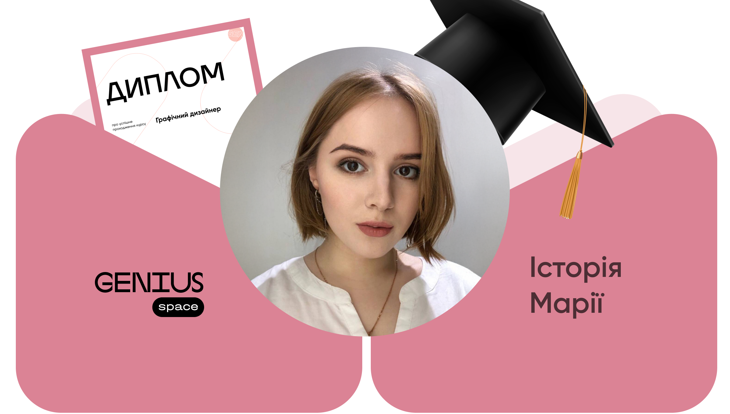 Курс з графічного дизайну від Genius.Space створений саме для тих, хто хоче перейти до усвідомленої творчості, зрозуміти логіку дизайну, побудувати портфоліо й упевнено рухатись у новій професії. Зареєструйся на наступний потік курсу «Графічний дизайнер» і дійди до свого першого професійного проекту, як це зробила Марія.