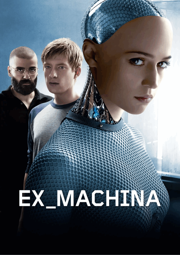 Фільм Алекса Гарленда «Екс-Махіна» став одним із найглибших кіноосмислень штучного інтелекту. Сюжет побудовано довкола експерименту: молодий програміст Кейлеб отримує завдання протестувати людиноподібного робота Аву, створеного мільярдером-винахідником. Випробування нагадує тест Тюрінга — чи здатна машина переконати людину в тому, що вона теж має свідомість?