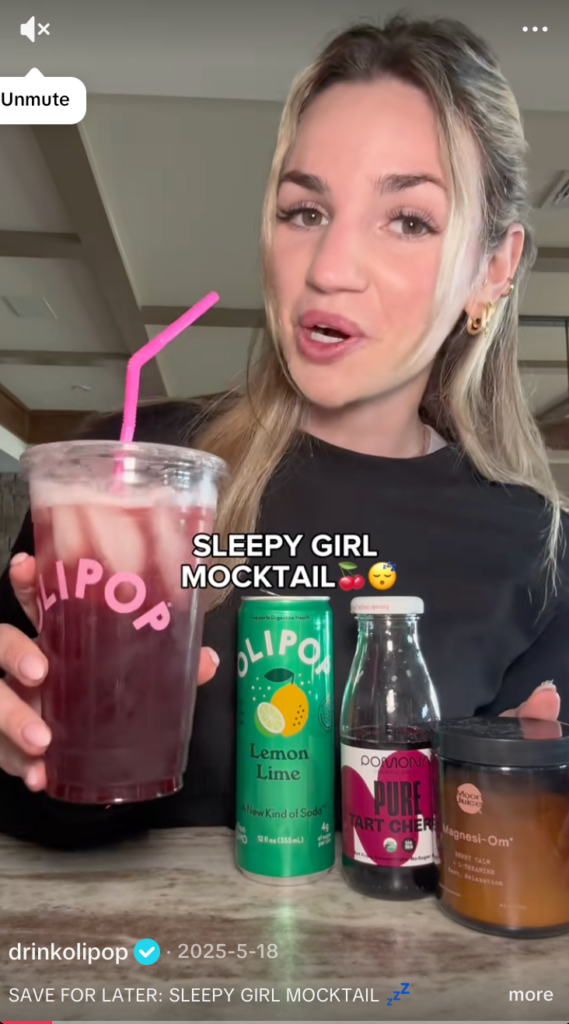 Приклад: американський бренд Olipop використав тренд #drinktok для рецепта «коктейлю для сонної дівчини» і набрав мільйони переглядів. І це не випадковість: кажуть, відеорецепти в середньому додивляються до кінця на 58% частіше, ніж контент на іншу тему.