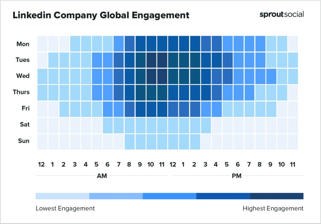За даними Hootsuite, Sprout Social та LinkedIn-аналітиків, найефективніші дні для постингу — вівторок і четвер, а також іноді середа. Люди менш завантажені, частіше гортають стрічку, активніші у коментарях.