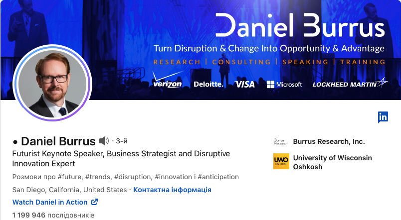Твій профіль — це твій контент. Усе, що ти постиш, розглядається крізь призму твоєї «візитки» в LinkedIn. Якщо хочеш, щоб алгоритм довіряв тобі більше — дай йому чітко зрозуміти, хто ти, і що ти даєш людям.