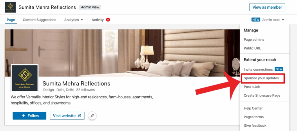 - Обери “Sponsored content” — це формат просування постів, який виглядає природно.