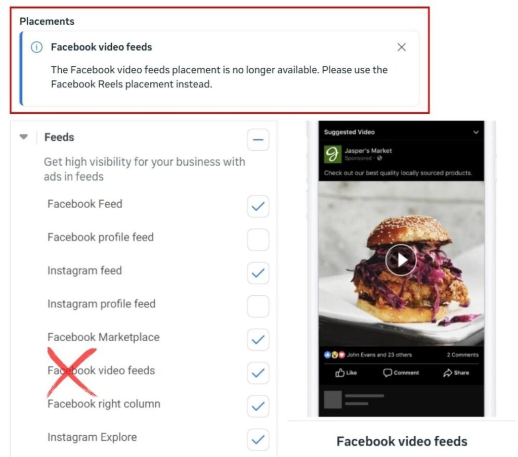 З червня 2025 року компанія запустила новий відеоплеєр для контенту у стрічці та In-Stream, через що плейсмент Facebook Video Feeds більше недоступний. Тепер, якщо ти хочеш показувати відео у Facebook, потрібно використовувати Reels — саме цей формат замінив усі відеоплейсменти 📹