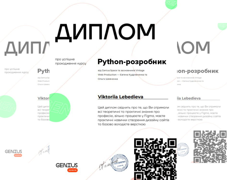 Диплом про навчання від Genius Space