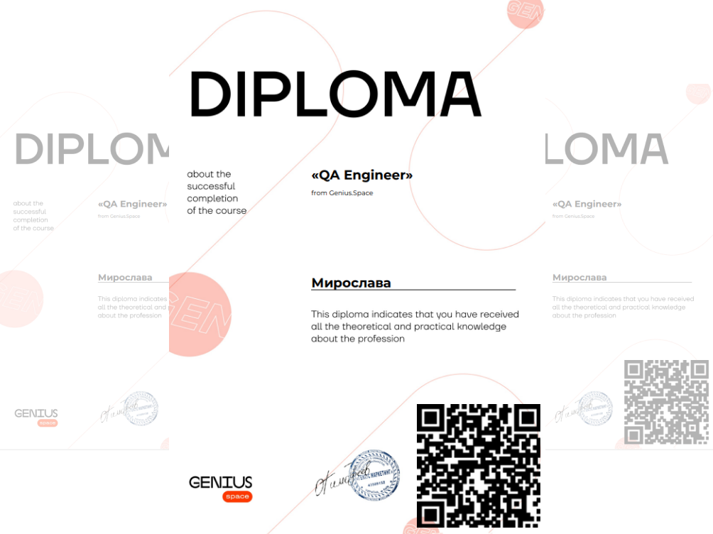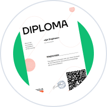 Після закінчення навчання ви проходите додаткове тестування та отримуєте диплом, який підтверджує, що ви – професійний Тестувальник ПЗ.