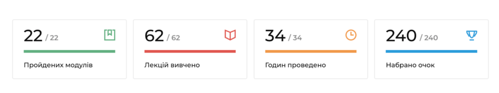 - четкая структура обучения (20+ модулей, дедлайны, логическая последовательность),