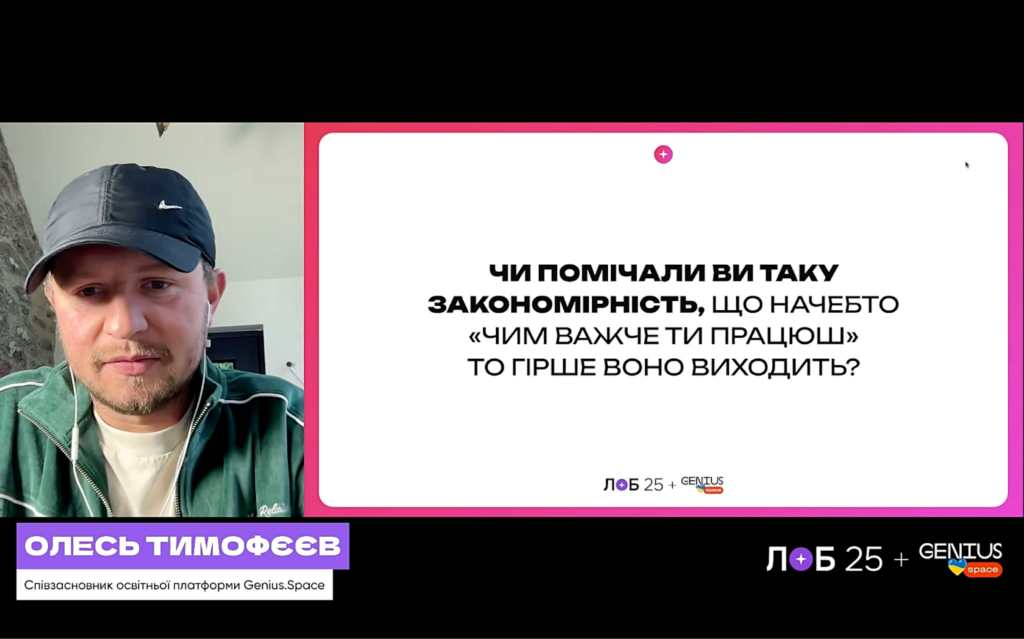 Тему другой важной трансформации мышления поднял Олесь Тимофеев, который сказал о конце эпохи хасла. Долгие годы мы верили в идею «нужно страдать, чтобы достигать»: работать по 12-15 часов, постоянно чувствовать напряжение и т.д. Но эта эпоха заканчивается. Настали другие времена: теперь результаты появляются не от напряжения, а от ясности, спокойствия и легкости.