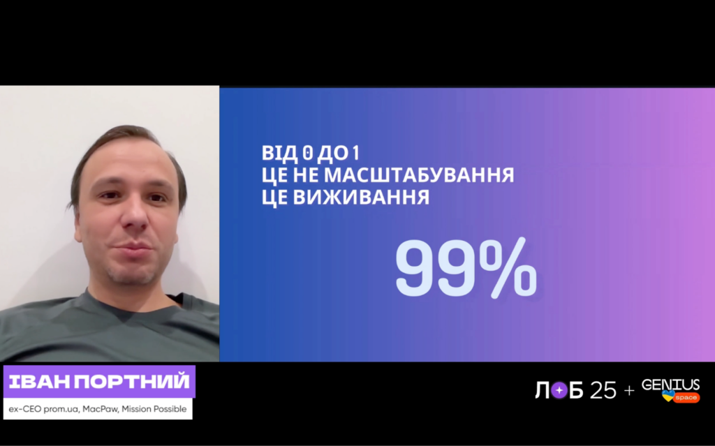 Завершал последний день ЛОБ25 Иван Портный. Он признался, что переход из крупной компании в стартап — это не апгрейд, а полное обнуление. От 1 до 10 строить легко, но от 0 до 1 — это совсем другое. 99% стартапов умирают — и это ощущается особенно остро, когда идешь в предпринимательство с сильным опытом, который внезапно перестает работать.