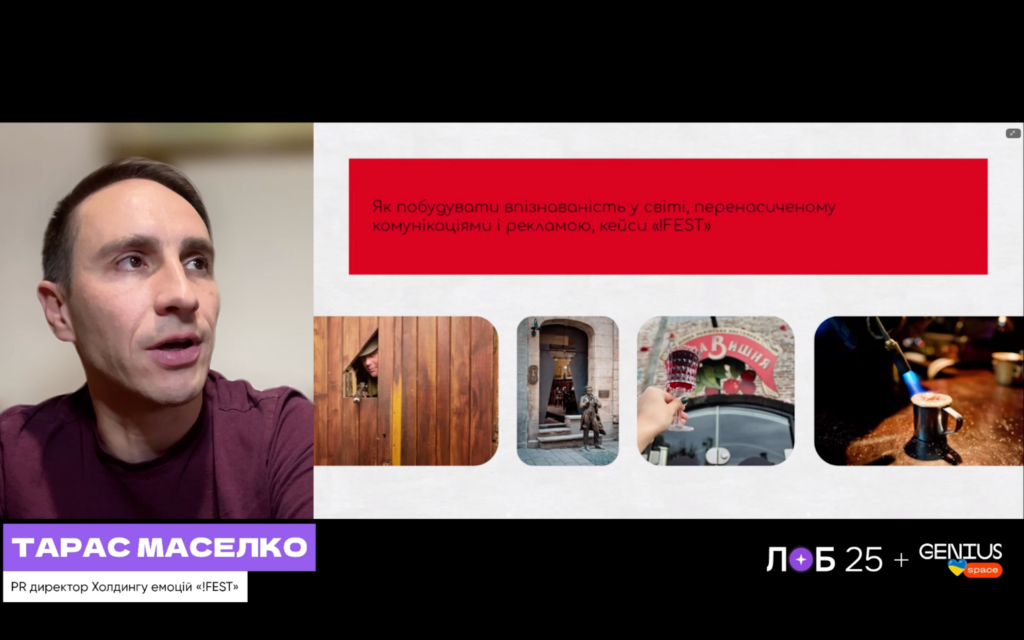 И уже ближе к финалу снова поднялась тема бренда — на этот раз с Тарасом Маселко и его философией легенд. Он рассказывал об эмоциональном ядре бренда: каждая его локация имеет свою историю, смыслы и вайб.