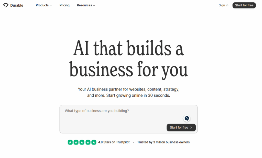 Durable AI помогает не только сэкономить время, но и избежать типичных трудностей при запуске сайта: поиска шаблонов, настройки хостинга, выбора изображений. Ты сразу получаешь готовую платформу, которая выглядит современно, работает стабильно и адаптирована к мобильным устройствам. После этого остается только добавить свой контент — и сайт можно запускать.