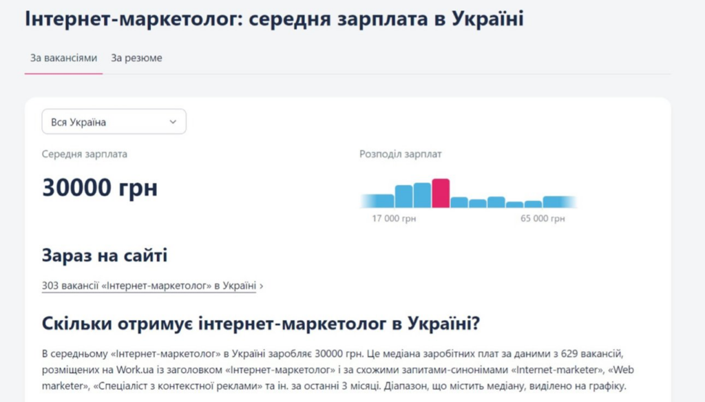 | Локальный маркетолог (Work.ua) | $950-1 020/мес | Опыт, портфолио |
