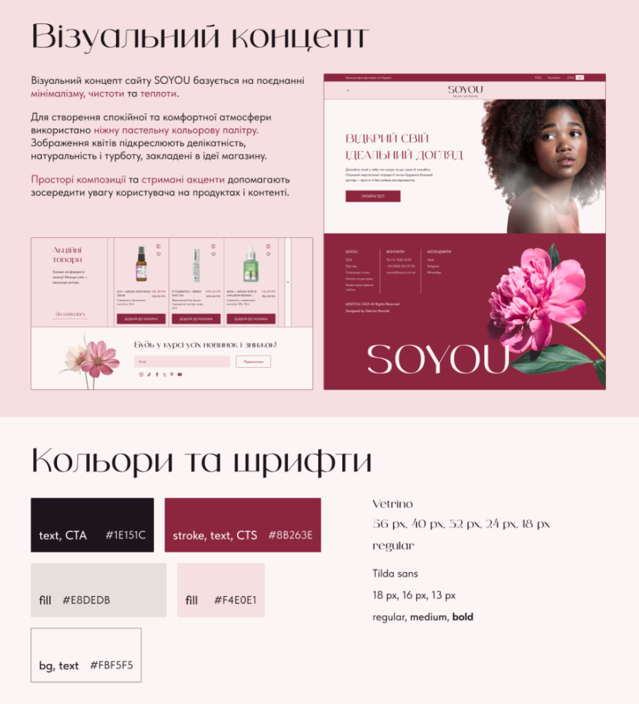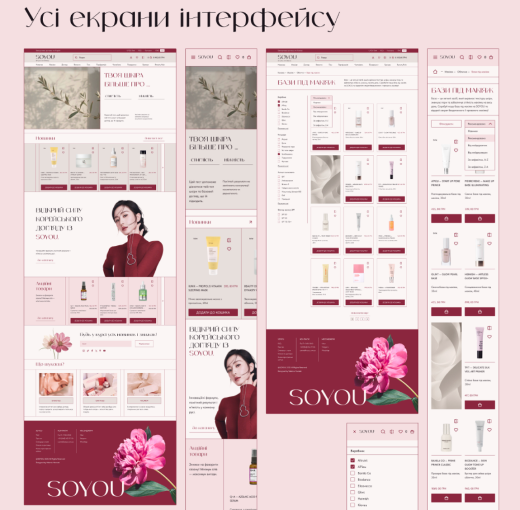 SOYOU Cosmetics — интернет-магазин косметики. Полноценный веб-дизайн со всеми необходимыми экранами: