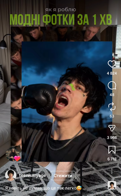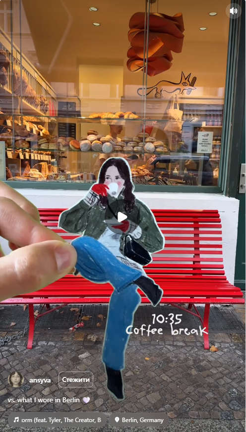 Этот формат сочетает реальную съемку с цифровыми объектами: графикой, персонажами, эффектами или текстурами. В 2026 году AR используется не как развлечение, а как способ выделиться в перенасыщенной ленте. Визуальный сюрприз заставляет остановиться и присмотреться.