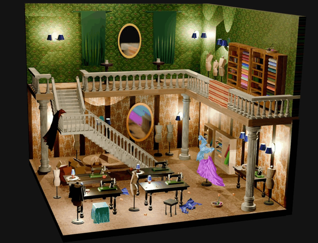 - Создавать полноценные сцены — комнаты, мебель, предметы интерьера.