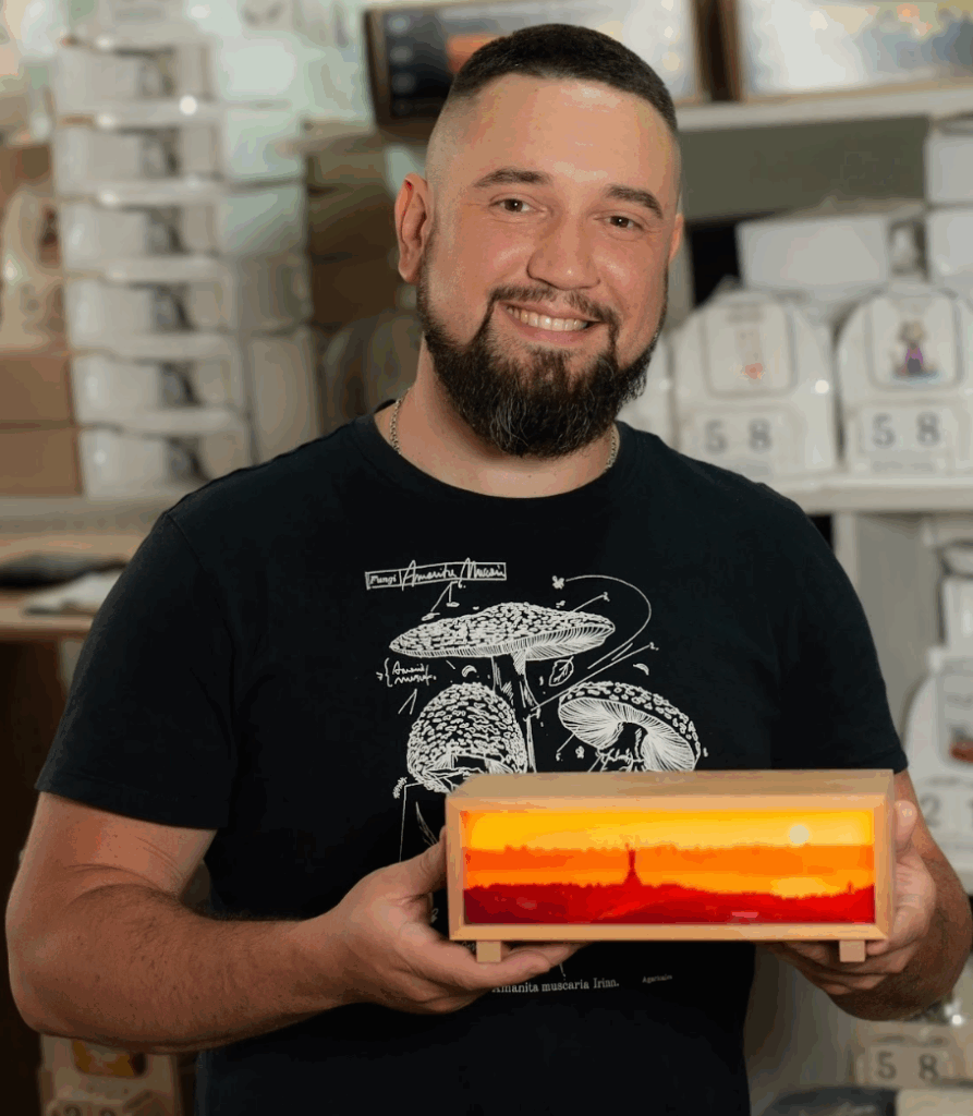 В 2025 году Петр поступает на курс «Комплексный интернет-маркетинг» (КИМ) в Genius.Space, и именно тогда рождается идея ночника-панорамы — продукта, который впоследствии стал символом домашнего тепла для многих клиентов и получил поддержку Валерия Залужного, Сергея Притулы, Сергея Стерненко и фонда «Тихо».