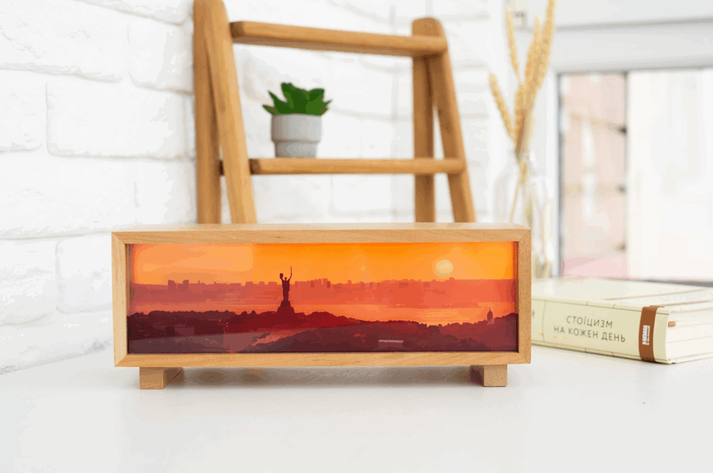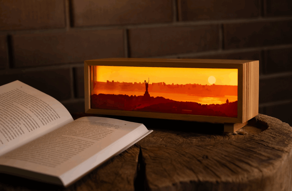 🌆 Первый макет изображал Киев: Днепр, мосты, Родину-Мать на горизонте. Этот ночник быстро стал символом дома, который продолжает светиться вопреки всем испытаниям. Идея откликнулась в сердцах многих украинцев, поэтому спрос оказался огромным: заказы посыпались с первых дней.