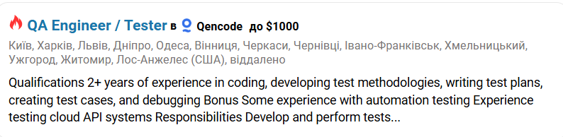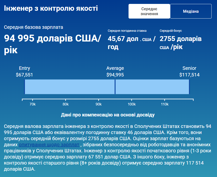 Этот рост обусловлен не только повышением спроса на контроль качества внутри страны, но и выходом украинских специалистов на глобальный рынок. Все больше компаний привлекают украинских QA к удаленным или смешанным формам сотрудничества, что положительно влияет на рыночные рейтинги. В то же время большинство инженеров по качеству работают как ФЛП, поэтому указанные суммы — это реальный чистый доход после уплаты налогов.
