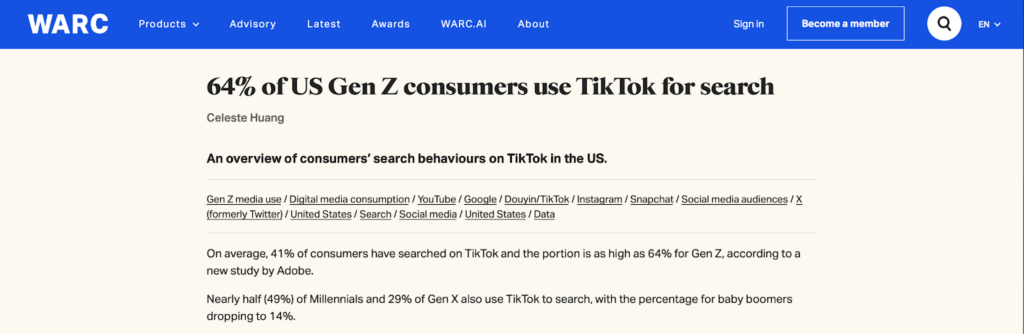 1. 64% Gen Z и 49% миллениалов использовали TikTok именно для поиска информации, а не просто для развлечения — по данным исследования Adobe.