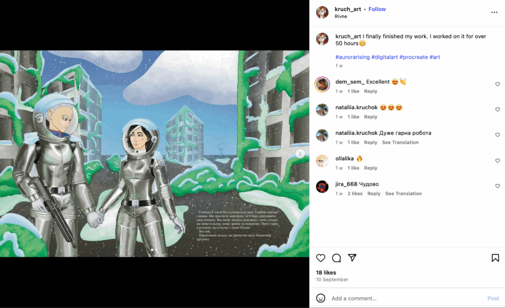 До обучения в Genius.Space Ярослава не имела профессионального опыта в рисовании. Она училась на музыканта, но чувствовала, что это не ее.
